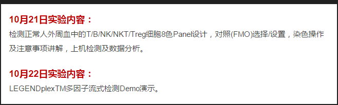 黃金十月,達科為流式培訓班要來沈陽啦,專業(yè)講解,理論與實驗雙管齊下,輕松完成流式八色檢測分析,更有LEGENDplexTM多因子Demo演示。流式上機名額有限,歡迎踴躍報名!