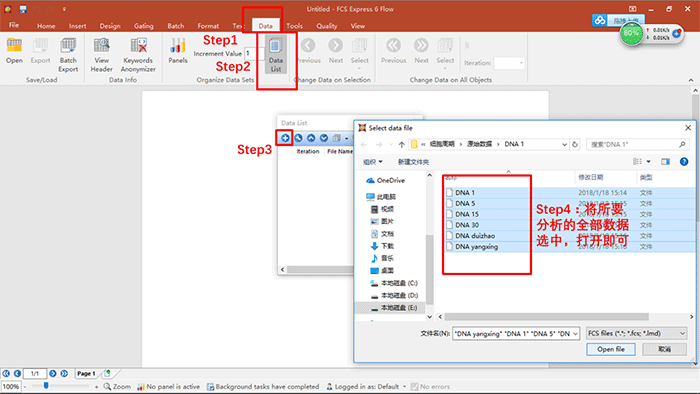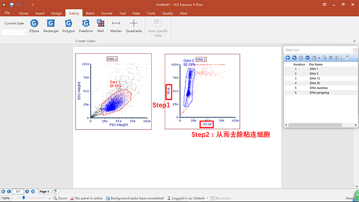 a.粘連細胞去除之后,可直接調(diào)用Denovo自帶的細胞周期分析模板,完成數(shù)據(jù)分析,具體操作如下: