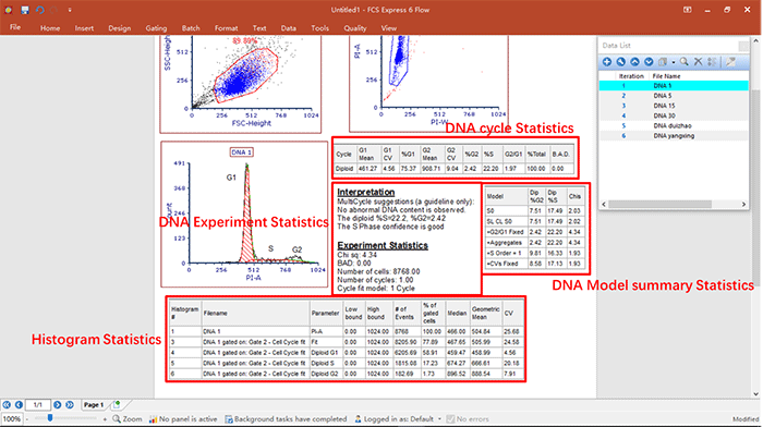 ? 演示內(nèi)容:細胞周期數(shù)據(jù)的分析,關(guān)于細胞周期各個參數(shù)的調(diào)用,統(tǒng)計學(xué)圖表的建立