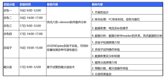 *注:請注意多色一、二、三、四為同一實驗,請根據(jù)自己的時間報名,請勿重復報名。上機實訓多色實驗擬招40人,多因子實驗與磁分選實驗分別擬招10人。