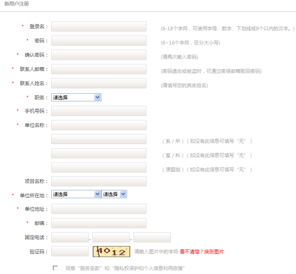 2.進(jìn)入注冊(cè)頁(yè)面,根據(jù)要求認(rèn)真填寫注冊(cè)信息,帶紅色標(biāo)記的為必填項(xiàng),并同意注冊(cè)條款,就可生成新用戶。