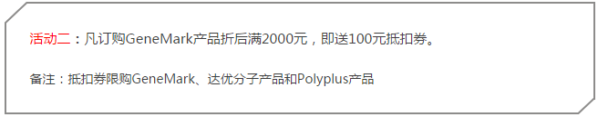 活動(dòng)一:凡購買GeneMark和達(dá)優(yōu)分子產(chǎn)品,折后滿: