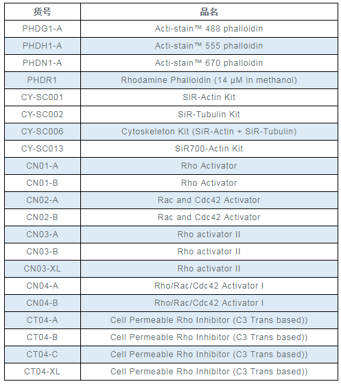 由于產(chǎn)品比較有特色,研究細胞骨架總是繞不開他們,包括F-actin、Tubulin的可視化以及信號通路中rac/cdc/rho的激活劑抑制劑等,同時促銷時間短暫,只到2月底(真希望這個2月有31天),