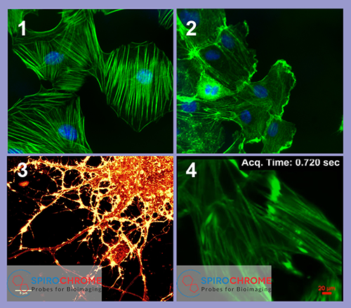 3&4為活細胞骨架研究:(3)SiR-Actin染色的神經(jīng)細胞以及(4)新生小鼠心肌細胞