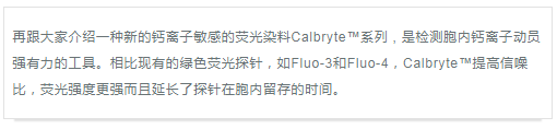 首先Calbryte?系列被偶聯(lián)了乙酰氧基甲酯( acetoxymethyl ,AM),意義有二:一是利用AM的親酯性使得探針能夠順利進入到細胞內(nèi);二是AM基團保證了Calbryte? 熒光探針在沒有進入細胞之前的非活性以及非熒光的特性,這樣就能減少非特異性信號,提高信噪比。