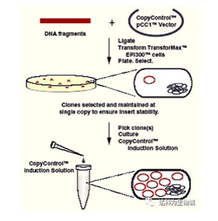 首先安利一下Epicentre的專利技術(shù)——CopyControl?克隆系統(tǒng),能夠讓您共享單拷貝和高拷貝的優(yōu)點(diǎn)。CopyControl?克?。菏紫纫詥慰截愋问缴L,單拷貝可以確保插入穩(wěn)定及成功克隆編碼基因序列;在需要的時(shí)候,通過誘導(dǎo)液誘導(dǎo)成高拷貝克隆,以便下游應(yīng)用所需。這一系統(tǒng)可以用來構(gòu)建PCR克隆,對(duì)于BAC,F(xiàn)osmid文庫等大型質(zhì)粒格外有用。