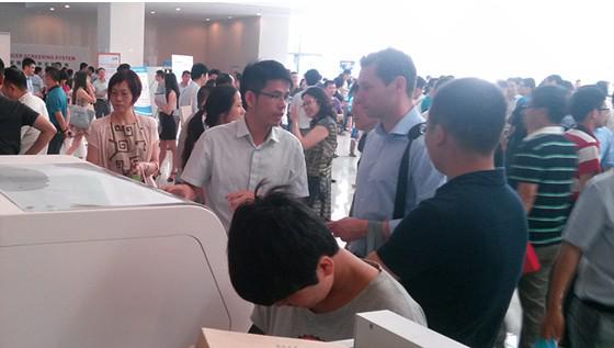 此外,相比往屆細(xì)胞病理年會(huì),本屆的參會(huì)醫(yī)生是歷年來(lái)最多的。為適用會(huì)議規(guī)模的增大,此次會(huì)議分兩個(gè)會(huì)場(chǎng)。主會(huì)場(chǎng)可容納上千人,開(kāi)幕式就在此舉行。階梯小會(huì)議室可容納數(shù)百人,已經(jīng)不能用“座無(wú)虛席”來(lái)形容了,而是“站無(wú)虛席”了。