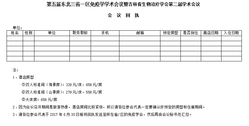 四、請各位參會代表于2017年6月30日前將回執(zhí)暨論文摘要表發(fā)送至學(xué)會